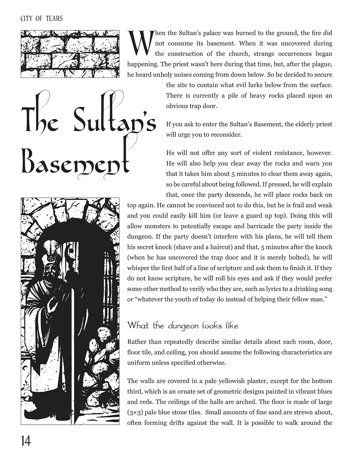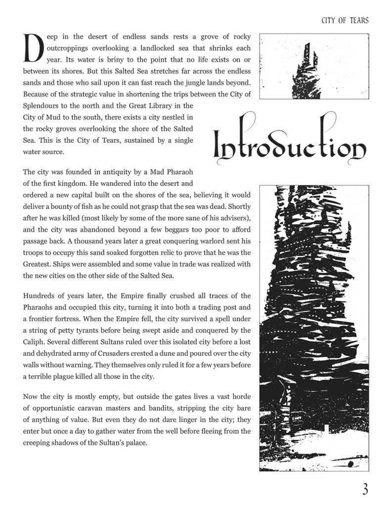 City of Tears is, by far, one of my favorite projects. I was very lucky to work with a producer who wanted to give me absolute free rein beyond a stipulation of black and white, and an artist who himself used InDesign. This allowed me to be very flexible in the layout, as Jez Gordon (the artist) could adjust pages to better fit his art later on. Even so, he made very few changes to my original design work