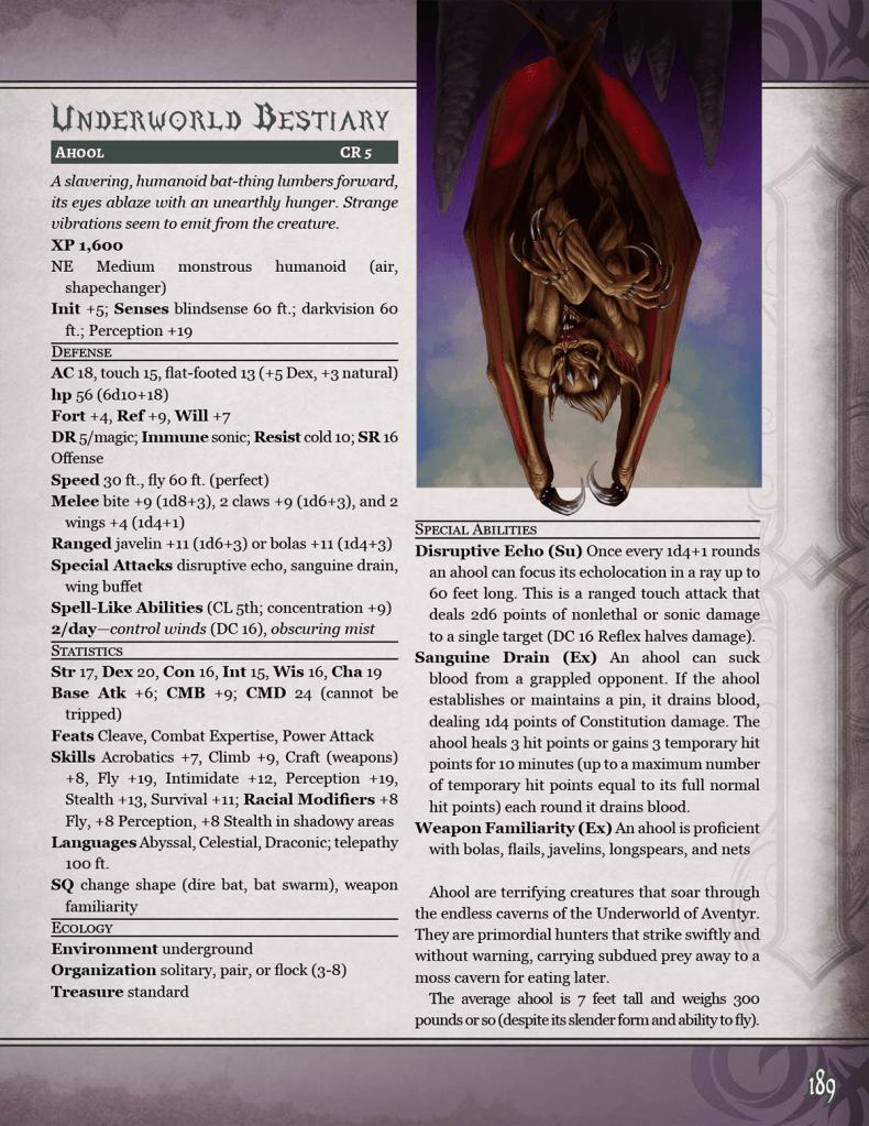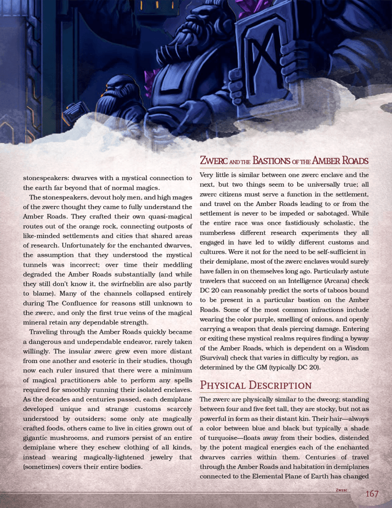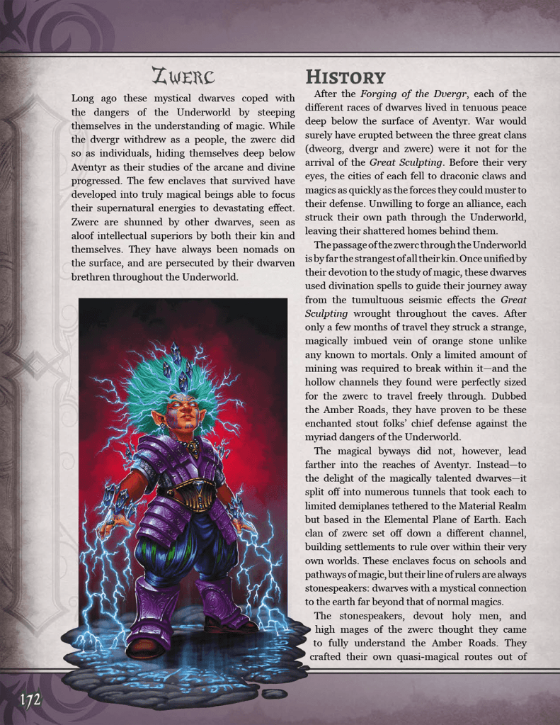 Jonathan specifically requested that I create trade dress that would harmonize with books published by Wizards of the Coast (publisher of Dungeons & Dragons) and Paizo (Publisher of Pathfinder) so that the books would look nice when opened next to products created by those companies. This meant walking a delicate line: ensuring that the books still had a look unique to AAW, but which would still evoke the feeling of the other company’s texts. This also meant that I had to create two completely different layouts for two different texts: effectively, two books instead of one. Justin Andrew Mason created the two different types of stationary for each layout, and I then used Mates Laurentiu’s artwork combined with different stock art, textures, and photoshop brushes to complete the look. I also sourced fonts that were similar to Wizards and Paizo’s trade dress, but different enough to be distinct.